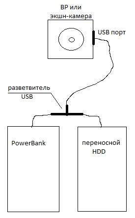 Возможно ли через USB порт ВР или экшн-камеры, подключить не только PowerBank, но и переносной HDD?